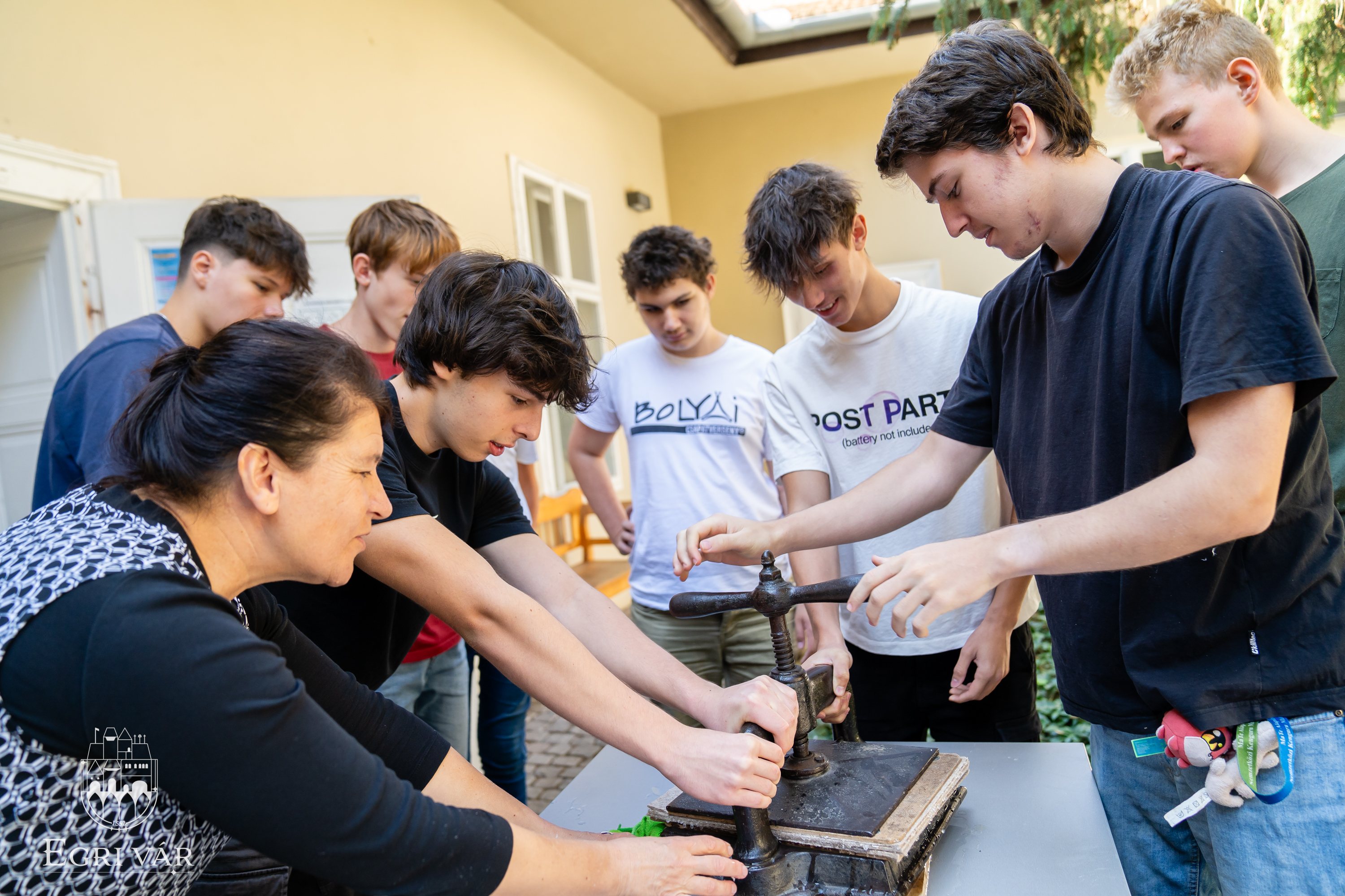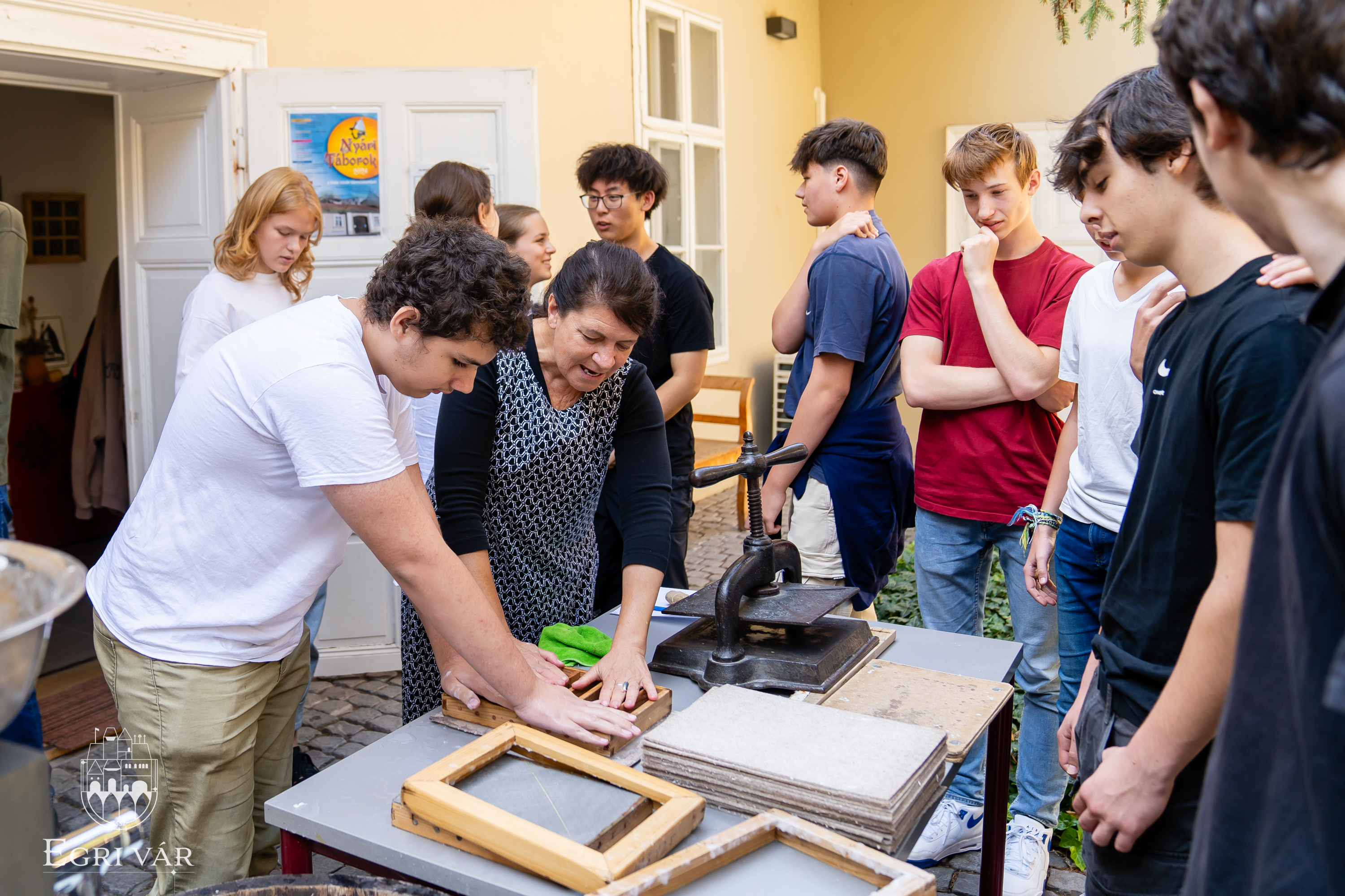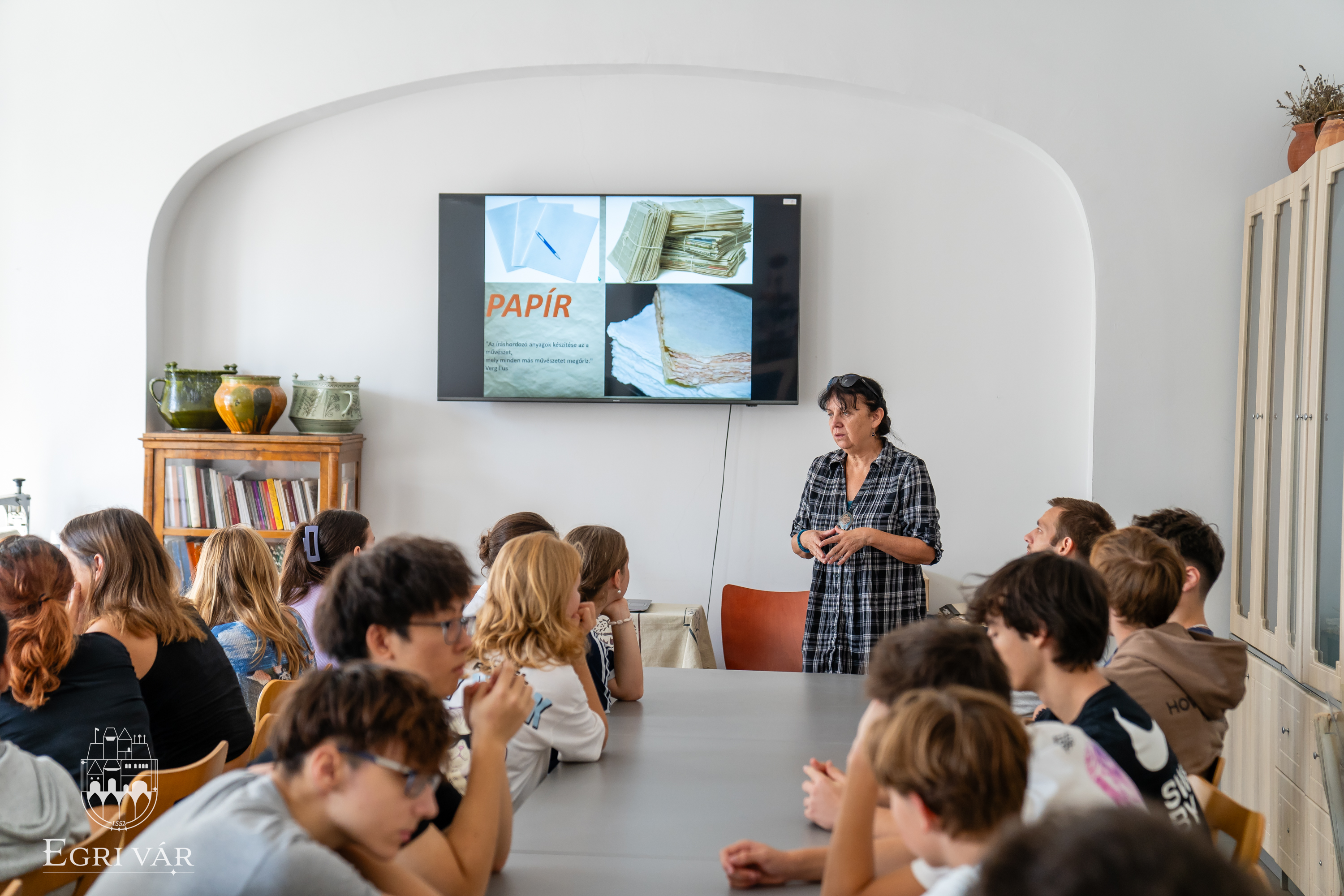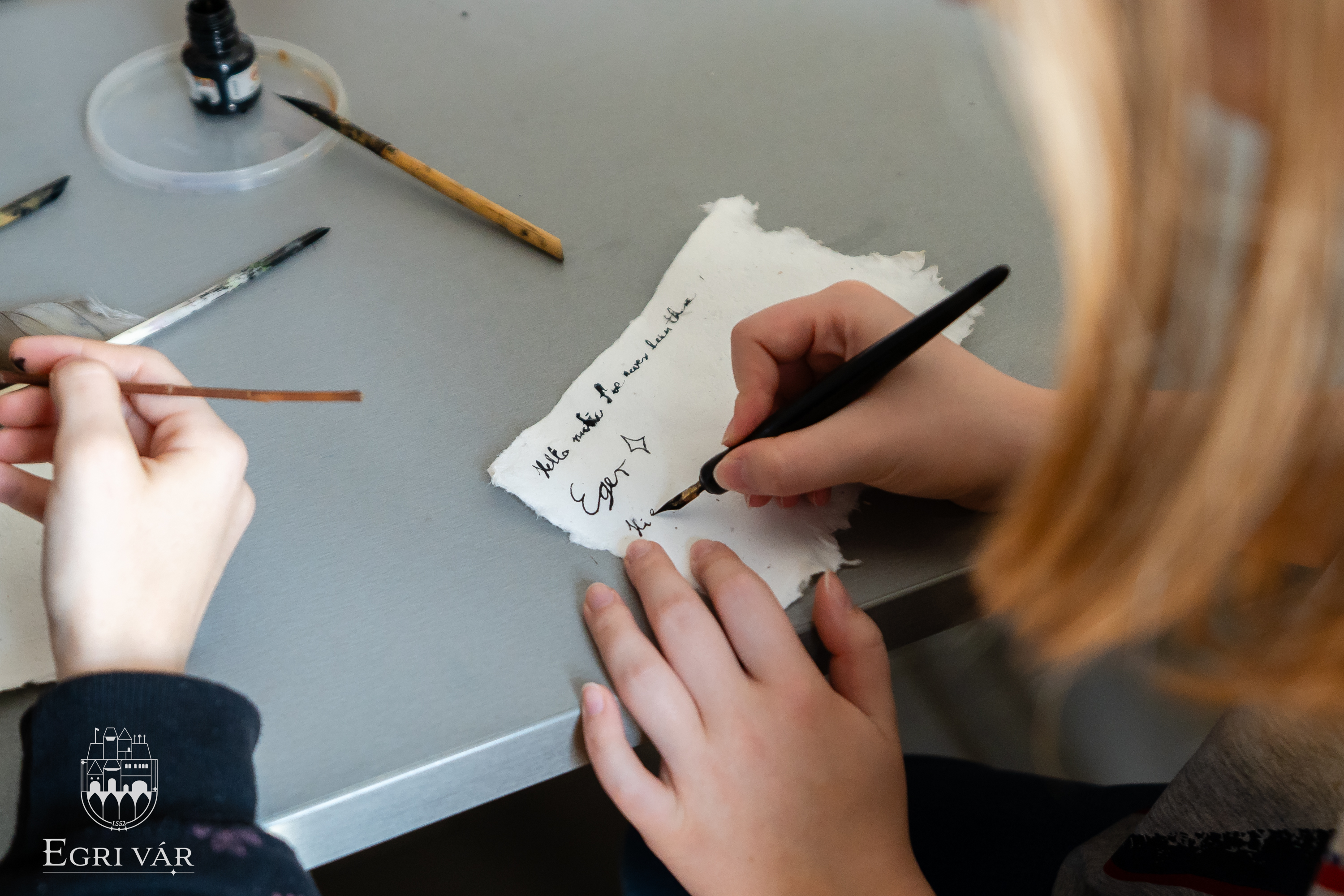 Az óra második felében a résztvevő gyermekek hagyományos eljárással saját kezűleg merítenek papírt.
