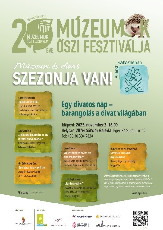 A korábbi évekhez hasonlóan múzeumunk idén is csatalakozott a Múzeumok Őszi Fesztiválja országos rendezvénysorozathoz, mely idén a Szezonja van! mottóval kerül megrendezésre és elsősorban a divat körforgására fókuszál, de egyéb tematikus egységek, mint például a múzeumi kulisszatitkok, őszbúcsúztató, múzeumi szünetelő programkínálatunkból is válogathatnak az érdeklődők. Reméljük, mindenki megtalálja a kedvére valót!