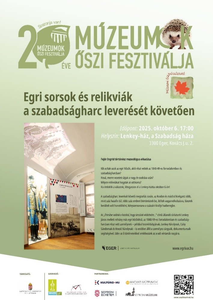 Kik voltak azok az egri hősök, akik részt vettek az 1848-49-es forradalomban és szabadságharcban? Hová, merre vezetett útjuk a nagy év sodrása után? Milyen relikviákat hagytak az utókorra? Ha érdeklik a válaszok, látogasson el a Lenkey-házba október 6-án! A program ingyenes, de előzetes regisztrációhoz kötött.
