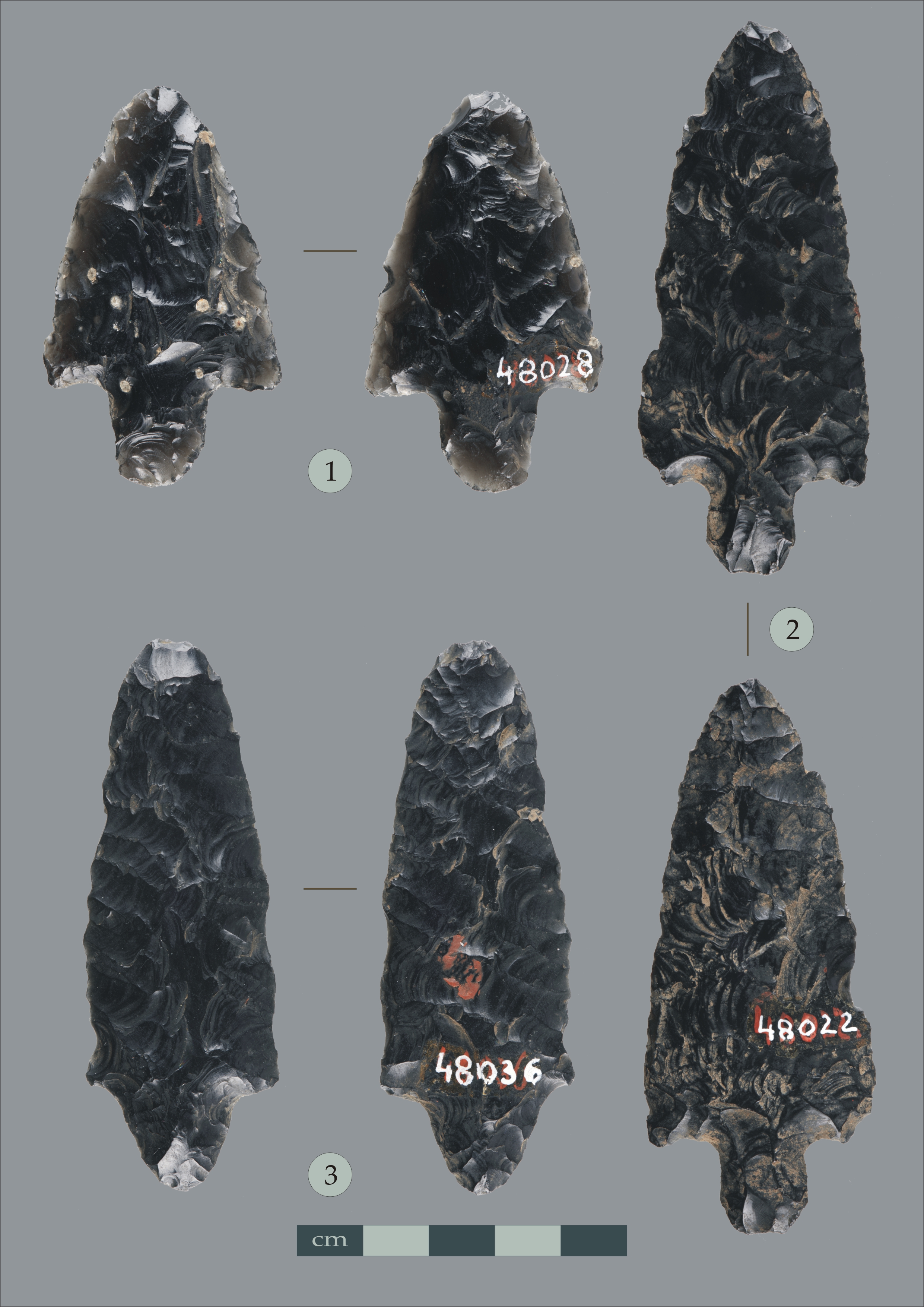 Obszidián nyíl- és dárdahegyek Teotihuacanból (Mexikó) a budapesti Néprajzi Múzeum gyűjteményéből