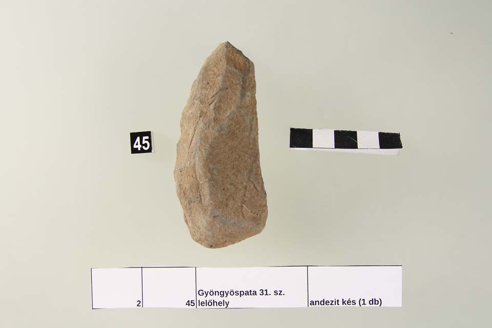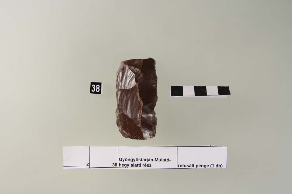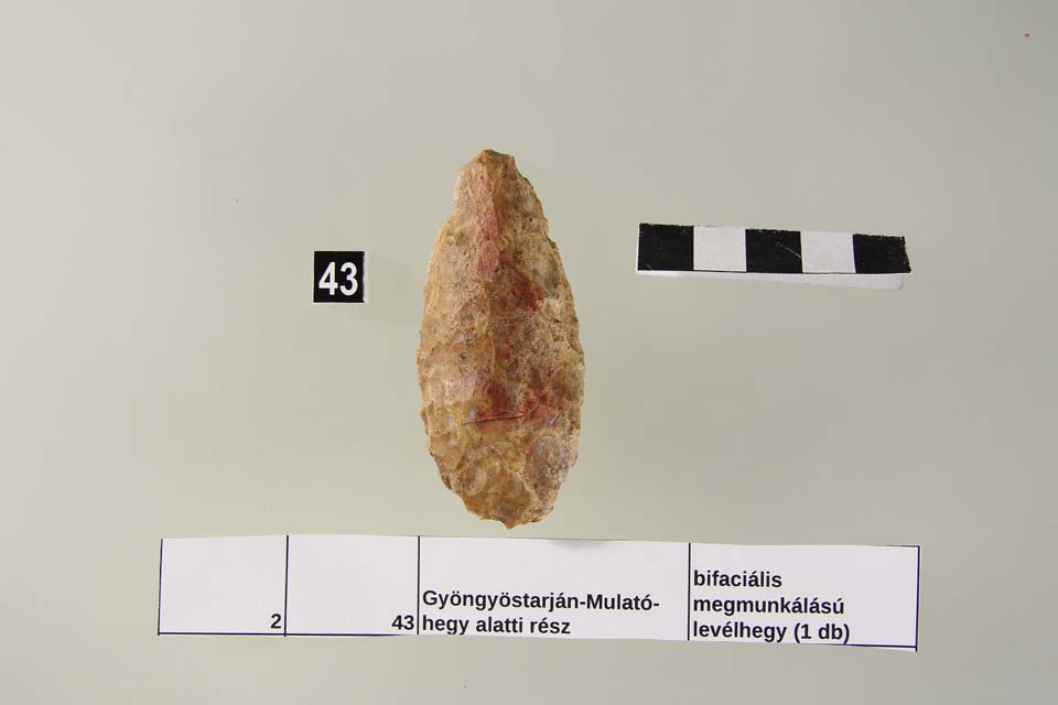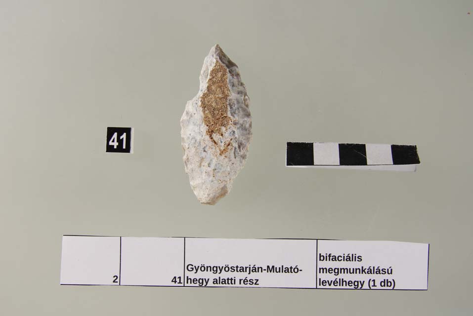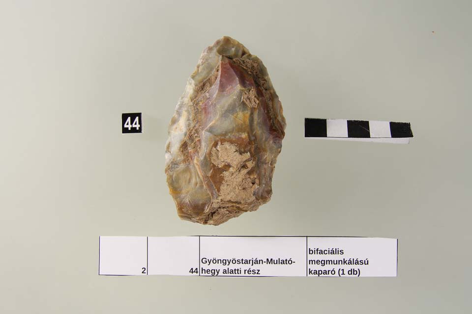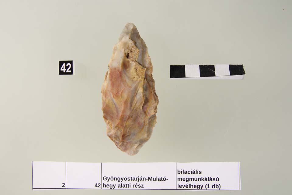 Kiállításunkban a neandervölgyi emberhez köthető, középső paleolitikus jellegű, Micoquien- vagy korai Szeletien-kultúrához tartozó, kétoldali megmunkálású, levél alakú hegyeket, kaparókat és kaparókéseket mutatunk be Gyöngyöstarján, Gyöngyösoroszi és Gyöngyöspata települések környezetéből. A modern ember felső paleolitikus jellegű Aurignacien eszközeit (magas vakarók, orros vakarók, többszörös élű vésők, retusált pengék) valamint Gravettien és Epigravettien eszközeit (hegyek, tompított hátú pengék, lamellák, vésők, pengevakarók, csonkított darabok) a Zagyva-folyó közép magas teraszairól és a Mátra-hegység vidékéről válogattuk össze.
