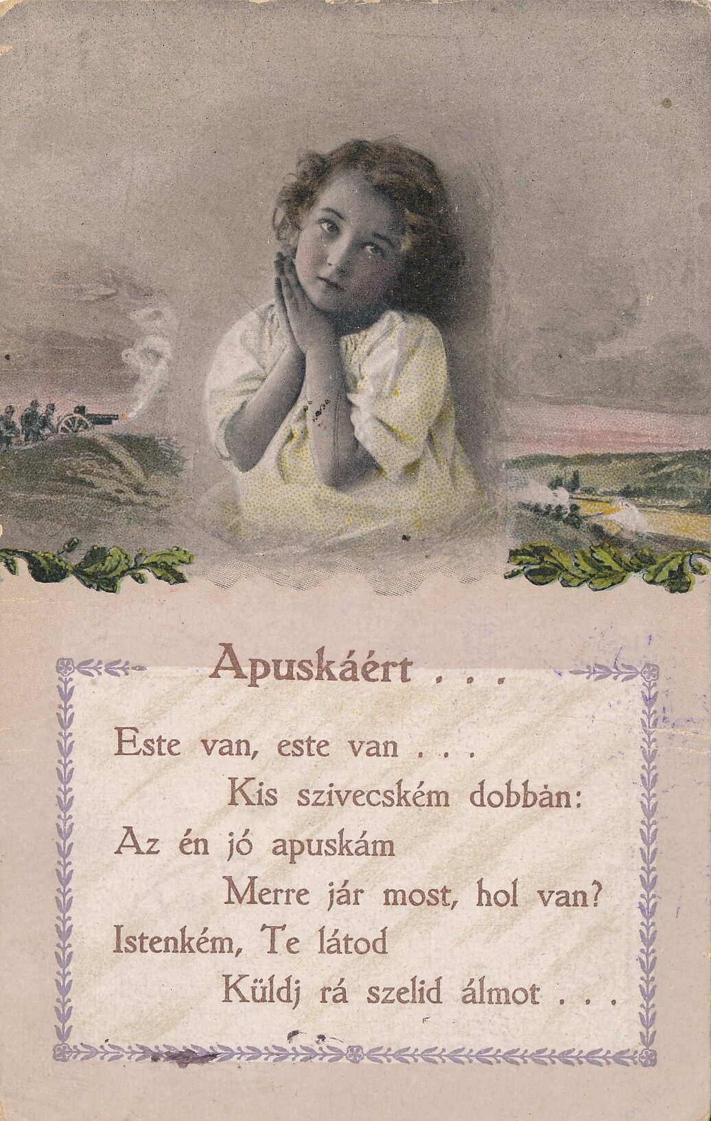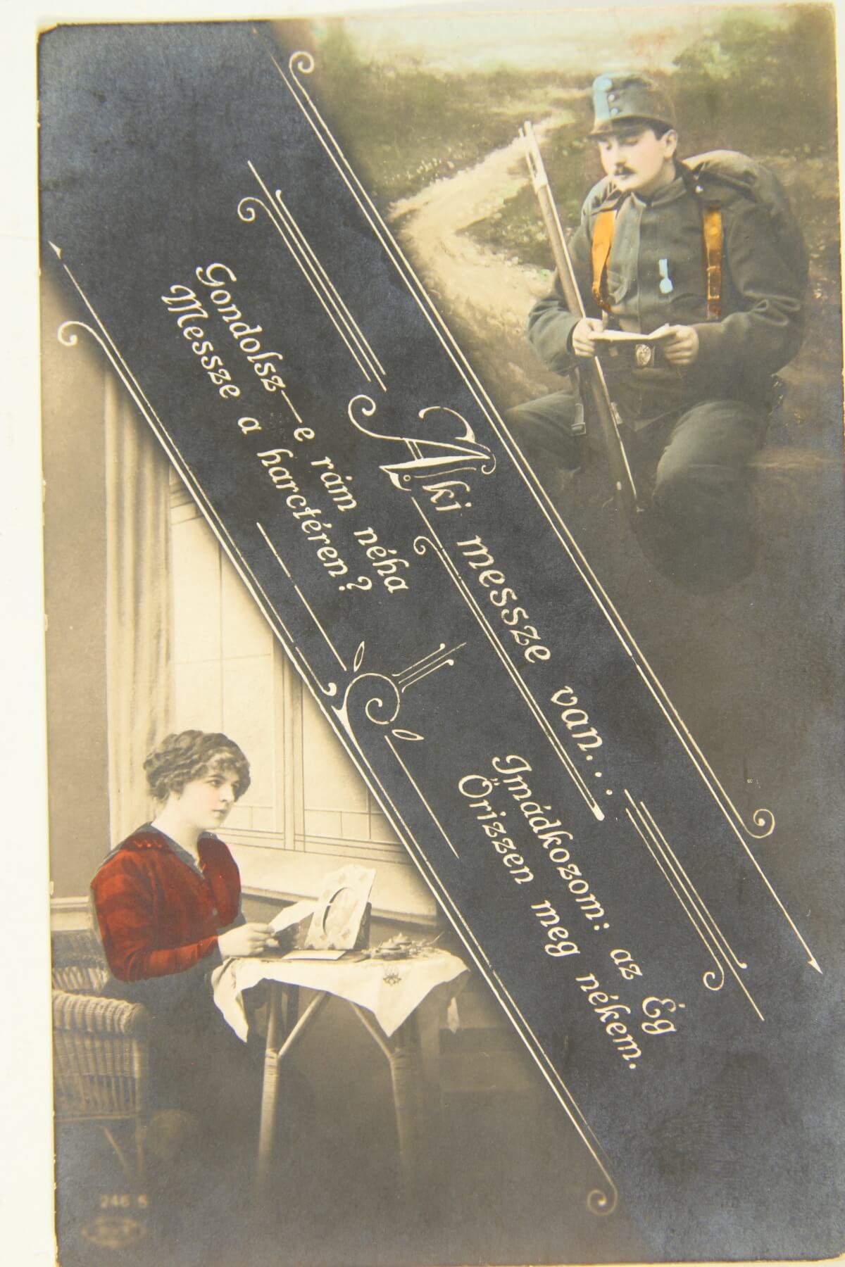 Egy évszázaddal ezelőtt a fronton szolgáló katonák és családtagjaik számára a kapcsolattartás kizárólagos eszközei a tábori postai levelezőlapok, illetve a képeslapok voltak. A fiút, kedvest, édesapát hazaváró családtagok pár soros üzenetei a lövészárkok poklában szenvedő, hazavágyódó katonáknak mindennél többet jelentettek. A frontról haza küldött képeslapokat cenzúrázták, ezért lényegi információkat nem tartalmazhattak. Így legtöbbször a katonák azt tudatták szeretteikkel, hogy jól vannak, egészségesek, valamint azt, hogy mit küldjenek számukra csomagban, mi az, amire szükségük lenne.