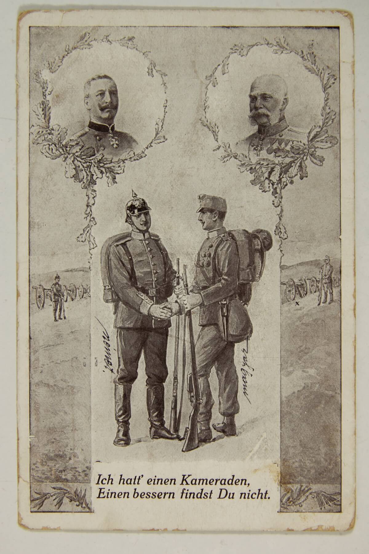Az igényesebb grafikával vagy fotók alapján készült képeslapok mellett hatalmas tömegben jelentek meg a giccses zsánerképekkel ellátott üdvözlőlapok is. Ezek legtöbbször a frontra induló vagy már a fronton lévő, de onnan is családjára, kedvesére gondoló katonát vagy épp a távol lévő apára gondoló családot ábrázolja.