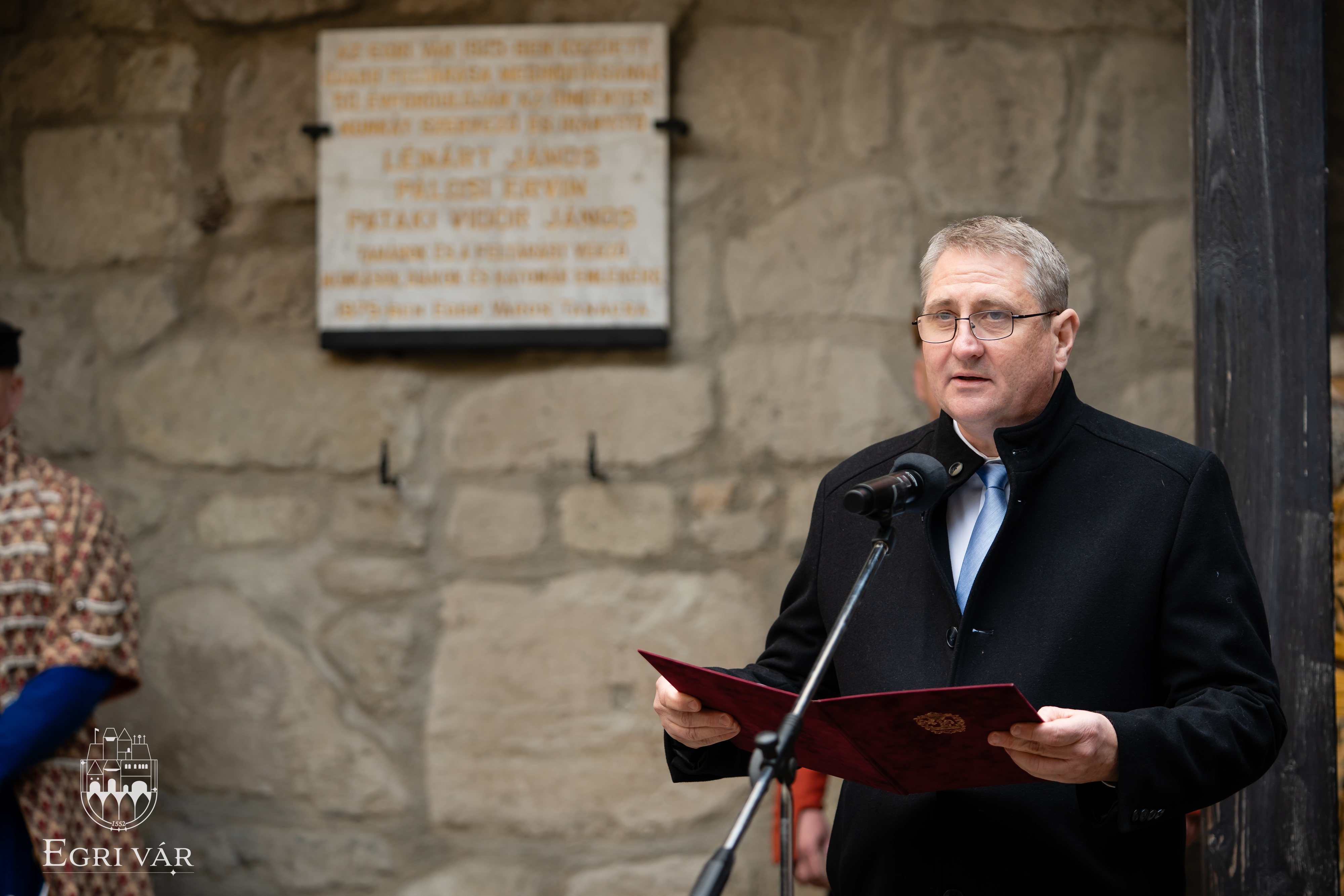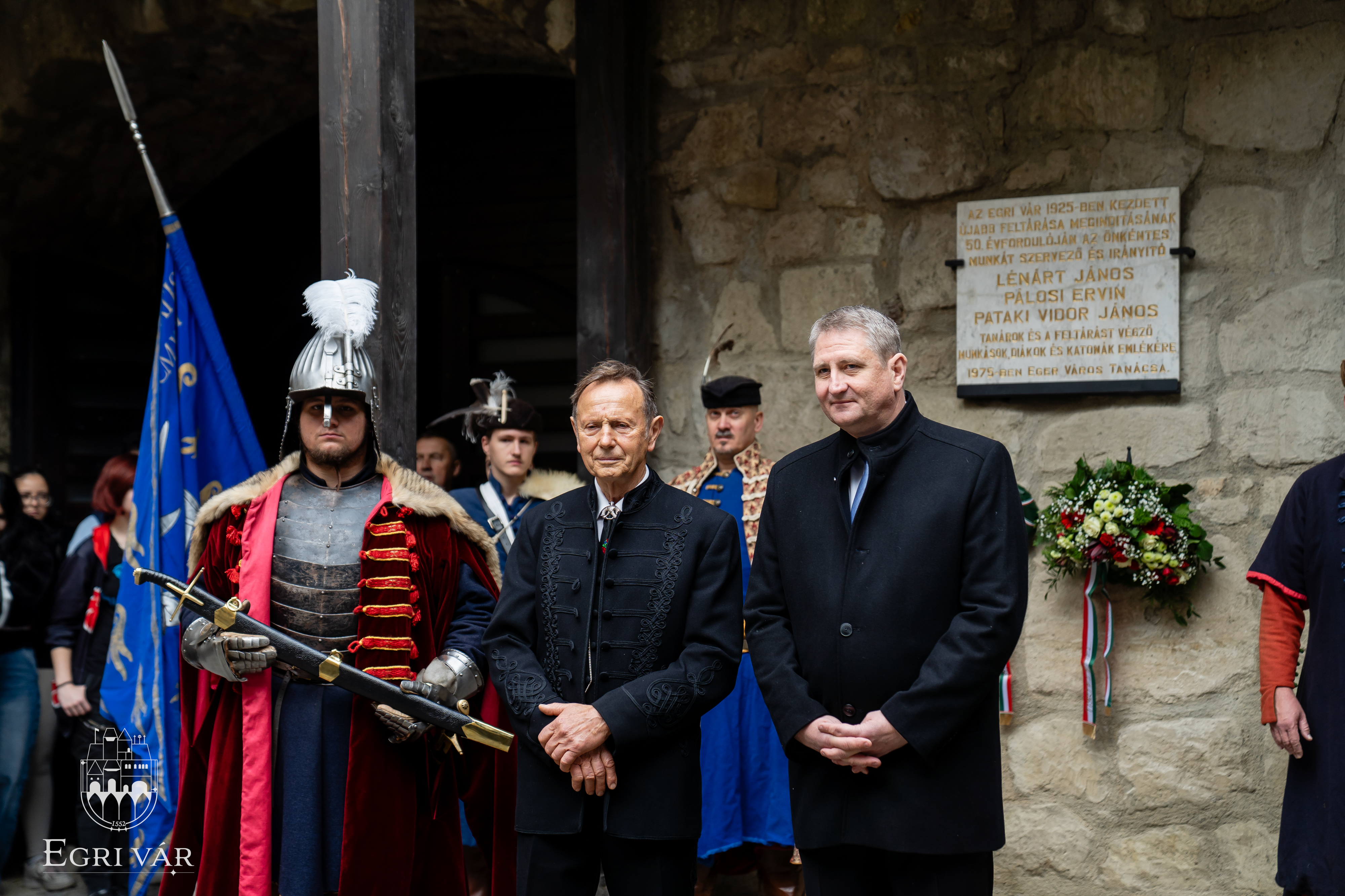 Az emléktáblánál Vágner Ákos, Eger Megyei Jogú Város polgármestere köszöntötte a résztvevőket, majd Novákné Mlakár Zsófia, a Dobó István Vármúzeum igazgatója idézte fel a vár feltárásainak történetét.