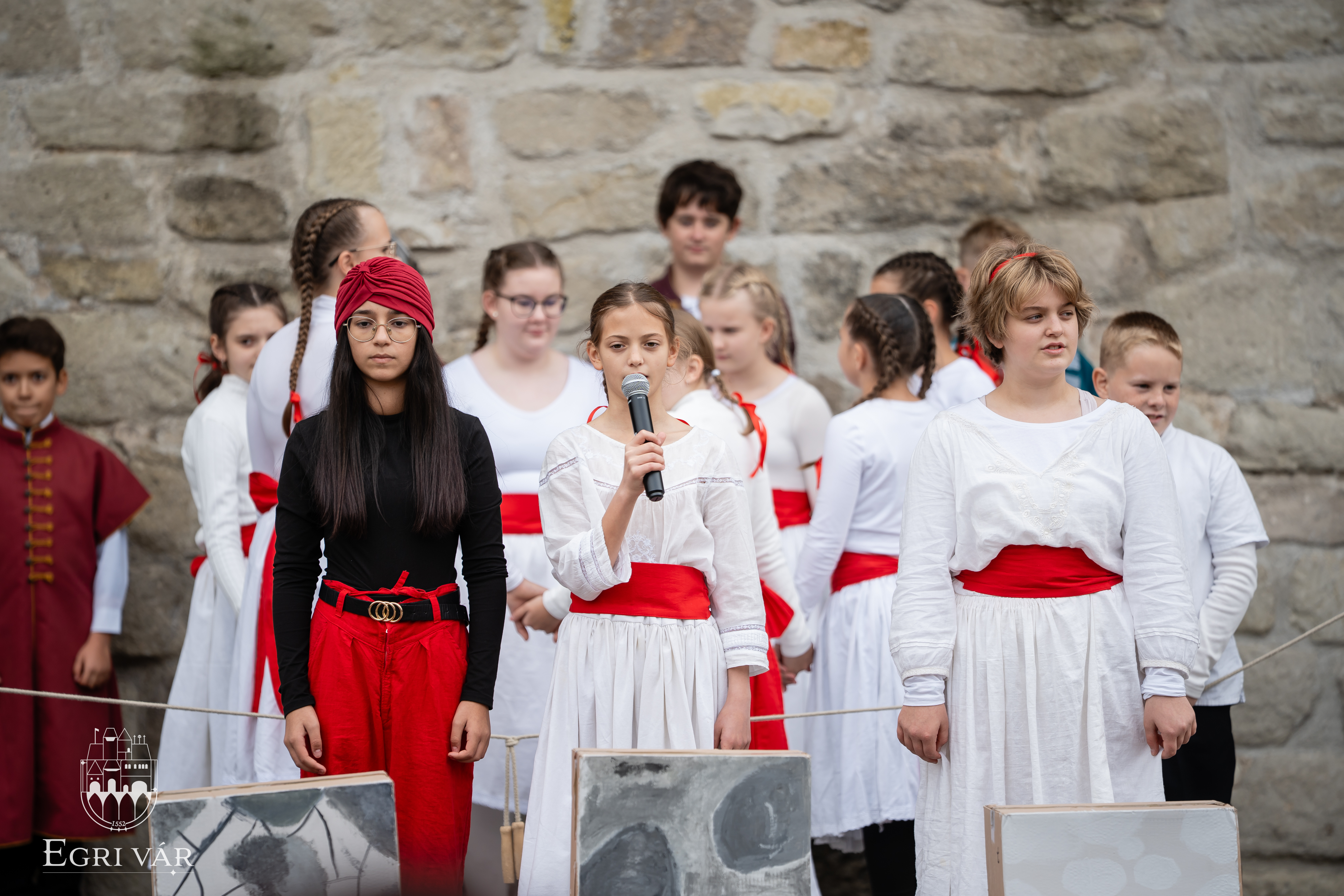A vár udvarán az egri Tinódi Sebestyén Magyar- Angol Két Tanítási Nyelvű Tagiskola hatodikos diákjai idézték meg az 1552-es ostrom eseményeit. A diákok hagyományosan, minden évben színpadi előadással tisztelegnek a várvédők előtt.