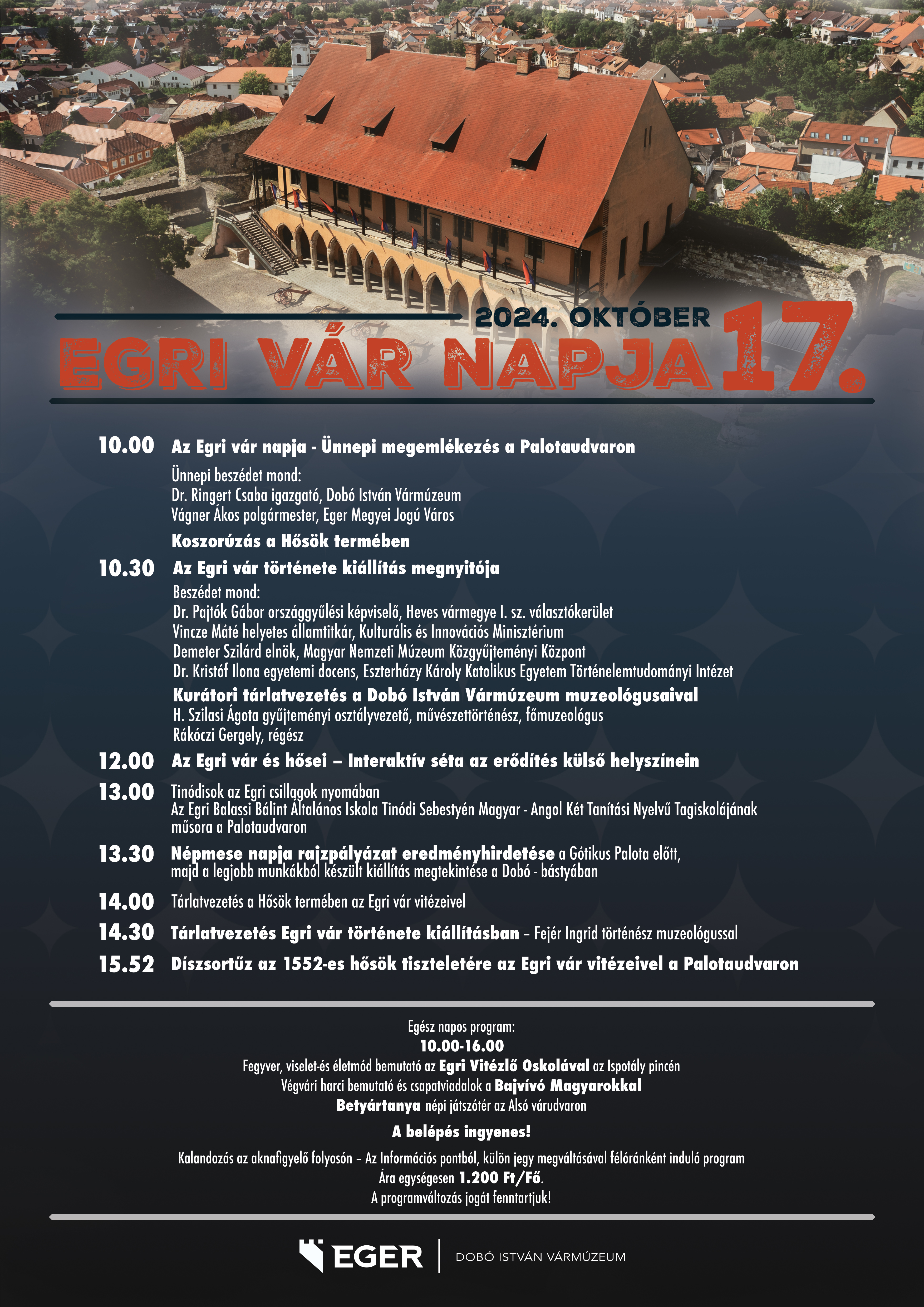 | 12.00 | Az Egri vár és hősei – Interaktív séta az erődítés külső helyszínein |