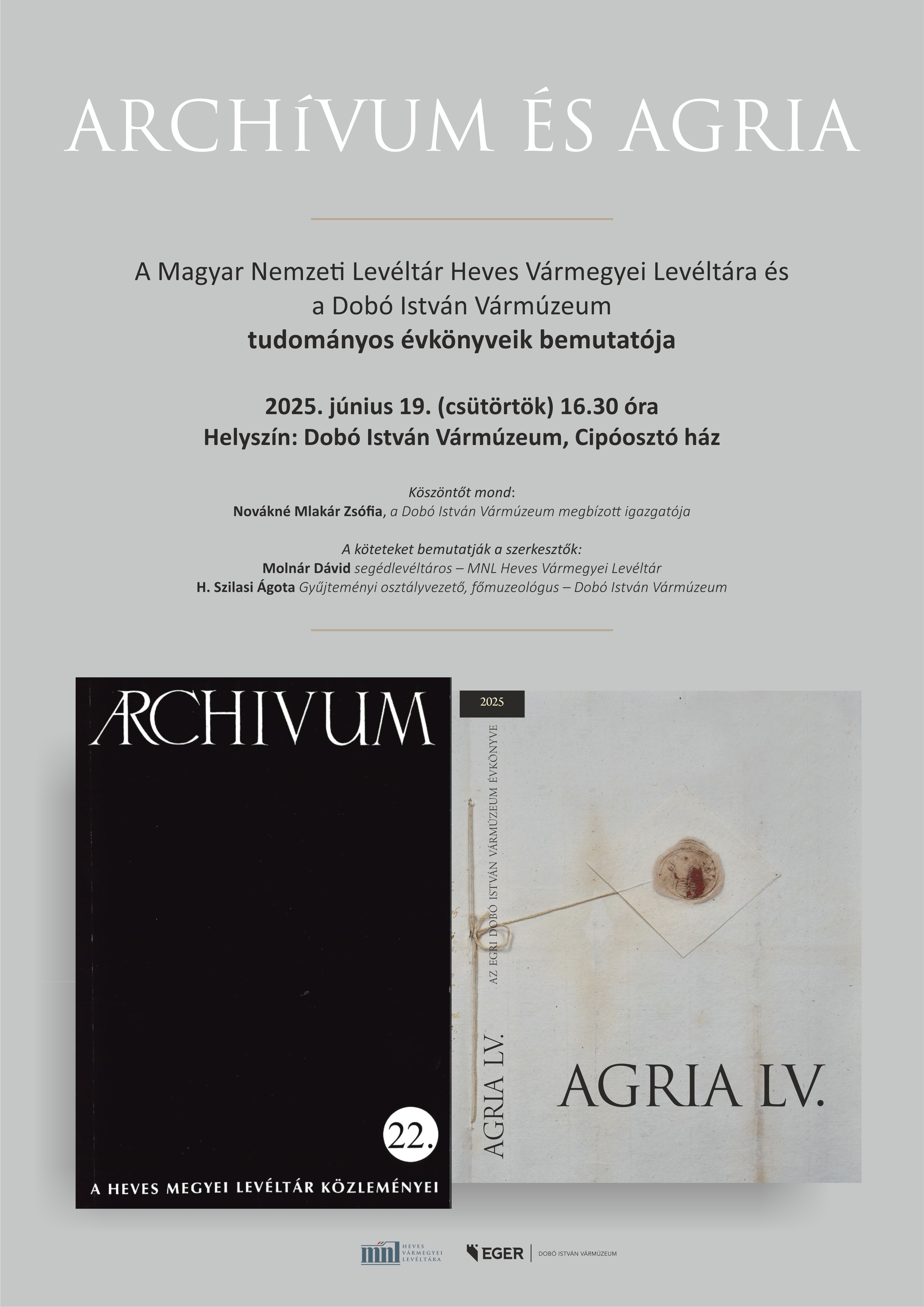 Szeretettel várunk mindenkit a kötet bemutatójára a Dobó István Vármúzeumba a Cipóosztó házba 2025. június 19-én 16.30-ra!