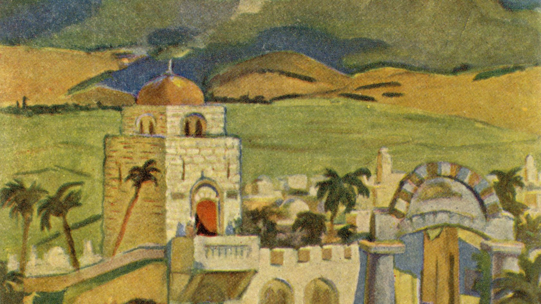 Passiójátékok Mikófalván. Jeruzsálemi élet. Udvary Dezső festménye. Képes levelezőlap, DIV ENA